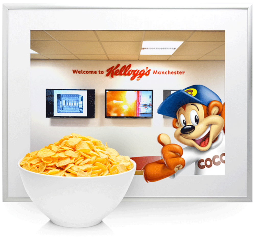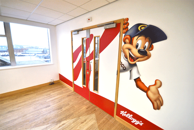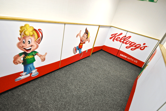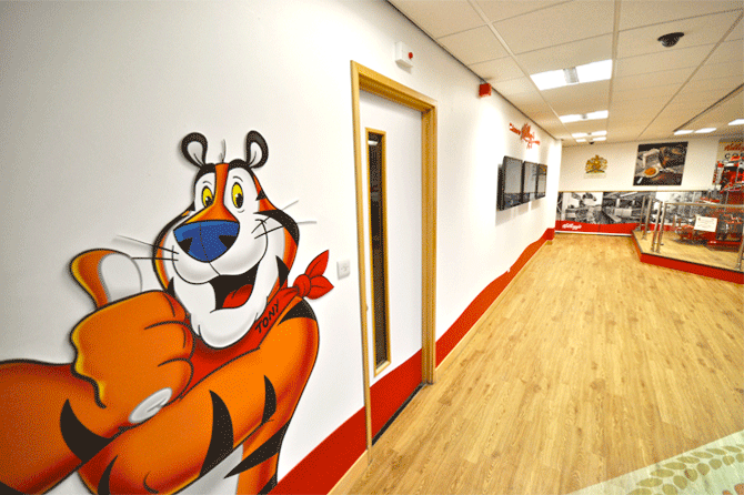 Large format graphic design for Kellogg's entrance foyer at their flagship plant in Manchester. Work produced while employed as Art Director at JGM Agency.